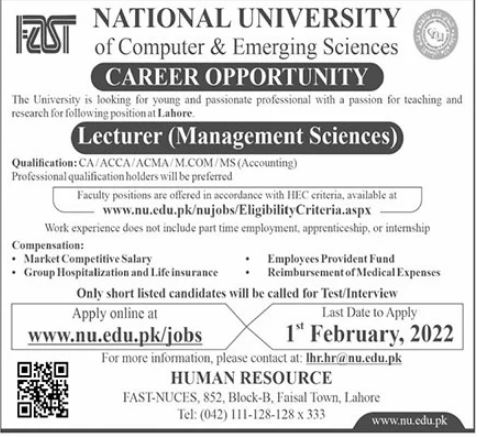 Apply at National University of Computer & Emerging Sciences latest Private jobs in Teaching and departments before closing date which is around February 1, 2022 or as per closing date in newspaper ad. Read complete ad online to know how to apply on latest National University of Computer & Emerging Sciences job opportunities.
