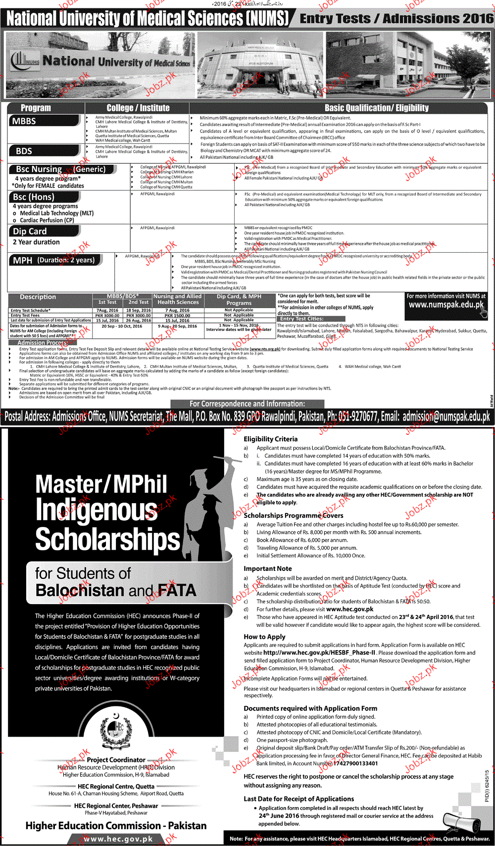 National University of Medical Sciences Admission in MBBS, BSc and MPH in Rawalpindi. Read newspaper ad for exact details.