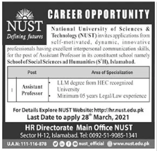 Latest National University of Science & Technology NUST Education Posts Islamabad 2025