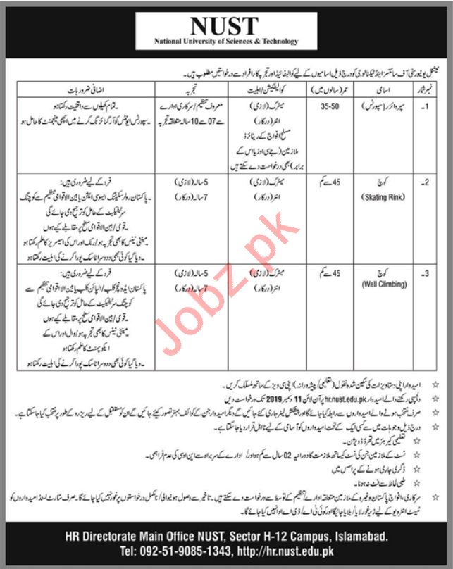 Vacancies in National University of Science & Technology NUST Advertisement December 2019