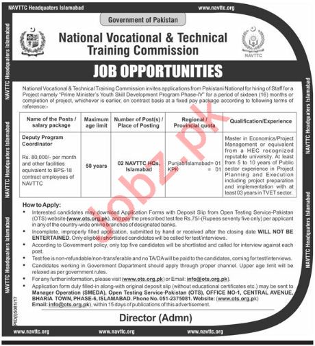 National Vocational & Technical Training NAVTTC Jobs 2018