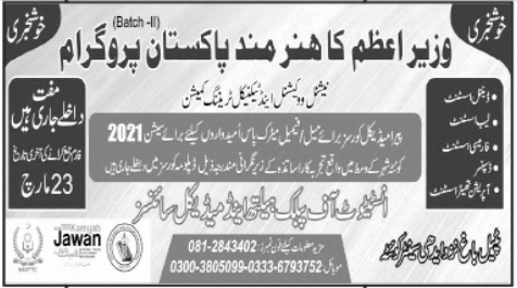 National Vocational & Technical Training Commission NAVTTC has announced admissions for paramedical diploma and courses in Dental Assistant, Lab Assistant, Pharmacy Assistant, Dispenser & Operation Theater Assistant. Read newspaper ad for exact details.