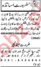 Principal, Vice Principal, Teacher, English Teacher, Chemistry Teacher, Physics Teacher, Coordinator, Biology Teacher, Maths Teacher, Urdu Teacher, Art Teacher, English Teacher, ESL Teacher, High School Teacher, History Teacher, Kindergarten Teacher seeks in well reputed schools.