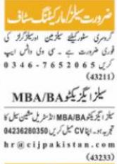 Nawaiwaqt Sunday Classified Ads 12 Dec 2021 for Sales Staff