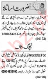 Private School is looking for candidates for following posts as per job advertisement published in daily Nawaiwaqt Newspaper of February 13, 2023 for location Lahore, lahore Punjab Pakistan: