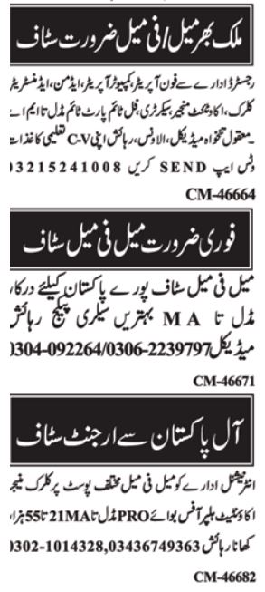 Nawaiwaqt Sunday Classified Ads 12 June 2022 Office Staff