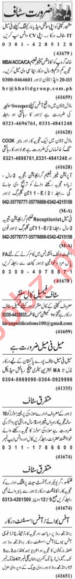 Nawaiwaqt Sunday Classified Ads 12 Sep 2021 For Office Staff
