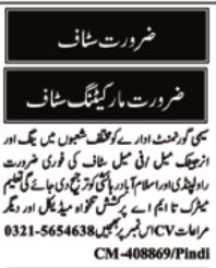 Private Company jobs advertisement dated about 15 September 2025 in daily Nawaiwaqt Newspaper invites application for the vacant post of marketing officer and marketing staff in Islamabad, islamabad Islamabad Pakistan. Educational qualifications required Intermediate, Bachelor and Matric etc.