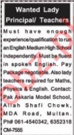 Nawaiwaqt Sunday Classified Ads 15 August 2021 for Teaching
