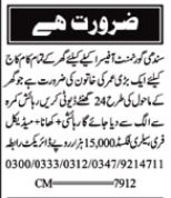 Nawaiwaqt Sunday Classified Ads 15 Sep 2024 for House Staff