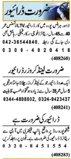 Nawaiwaqt Sunday Classified Ads 17 Nov 2024 for Driving