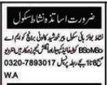 Vacancies in Nishat Boys High School Advertisement January 2025