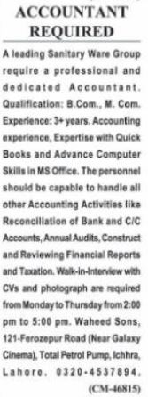 Private Company jobs advertisement dated about 20 June 2022 in daily Nawaiwaqt Newspaper invites application for the vacant post of accountant and accounts officer in Lahore, lahore Punjab Pakistan. Persons with Master and Bachelor etc. education can apply.