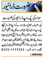 Waheed Sons Lahore, lahore Punjab Pakistan invites applications from eligible candidates for the post of pickup driver, ltv driver, driver and suzuki driver as per advertisement of December 2, 2024 published in daily Nawaiwaqt Newspaper. Educational qualifications required Middle and Matric etc.