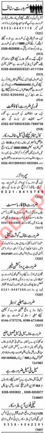 Nawaiwaqt Sunday Classified Ads 1st Nov 2020 Office Staff