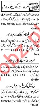 Nawaiwaqt Sunday Classified Ads 2018 for House Staff
