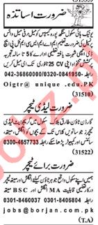 Nawaiwaqt Sunday Classified Ads 20th Jan 2019 for Teaching