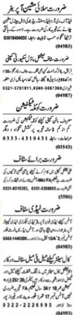Nawaiwaqt Sunday Classified Ads 21 Jan 2024 for Admin Staff