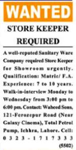 Waheed Sons invites applications for job positions advertised in daily Nawaiwaqt dated 22 January 2024 for following vacancies in Lahore, lahore Punjab Pakistan.