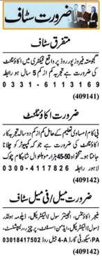 Private Company undefined, lahore Punjab Pakistan invites applications from eligible candidates for the post of electrical engineer, accounts officer, receptionist, admin assistant, engineer, purchaser, security guard, accountant, personal assistant, civil engineer, pa and manager accounts as per advertisement of December 23, 2024 published in daily Nawaiwaqt Newspaper. Preferred Education is B.com, Intermediate, Middle, Bachelor, BBA, BA and Matric etc.