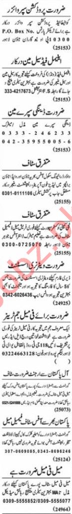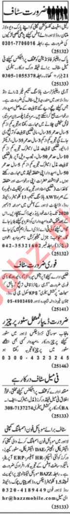 Nawaiwaqt Sunday Classified Ads 22 Nov 2020 Office Staff
