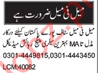 Apply as per details in job advertisement. Login to view further details of how to apply via https://www.jobz.pk online.