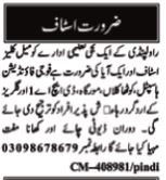Vacant posts including female cleaner, cleaner and aya are announced in Educational Organization Morgah Rawalpindi, rawalpindi Punjab Pakistan as per 24 November 2025 advertisement in daily Nawaiwaqt Newspaper. Persons with Primary and Middle etc. education can apply.