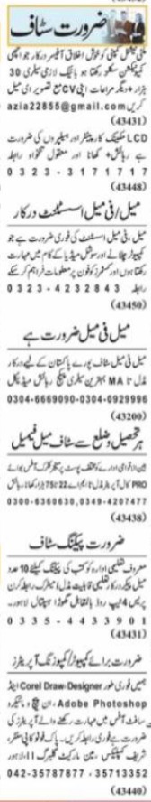 Nawaiwaqt Sunday Classified Ads 26 Dec 2021 for Office Staff