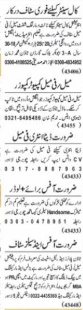 Nawaiwaqt Sunday Classified Ads 26 Dec 2021 For Office Staff