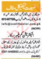 Private Industry Lahore, lahore Punjab Pakistan invites applications from eligible candidates for the post of electrician, engineer, plumber and electronics engineer as per advertisement of February 27, 2023 published in daily Nawaiwaqt Newspaper. Candidates with Intermediate, Bachelor and Matric etc. educational background will be preferred.