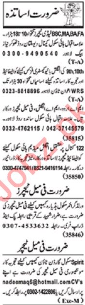 Nawaiwaqt Sunday Classified Ads 26 Jan 2020 for Teachers
