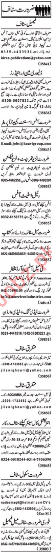Nawaiwaqt Sunday Classified Ads 26 Jan 2020 Office Staff