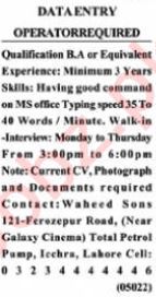 Latest Waheed Sons Data Entry Posts Lahore 2025