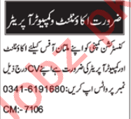 Accountant, CPA, Accounting Supervisor, Project Accountant, Staff Accountant, Cost Accountant, Accountant, Auditor, Accounts Officer, Assistant Accounts, Internal Auditor, External Auditor, General Manager Finance, Finance Officer seeks in well reputed companies.