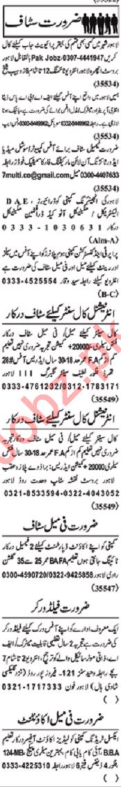 Nawaiwaqt Sunday Classified Ads 29 Dec 2019 Office Staff