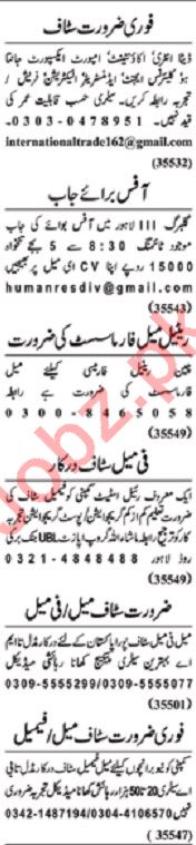 Salesman, Insurance Agent, Sales Officer, Cook, Security Guard, Watchman, Driver, Kitchen Helper, Dish Washer, Loader, Waiter, Receptionist, Supervisor, Chef, Maid, Clerk, Admin Officer, Data Entry Operator, Cashier, Manager, Sales Staff, Computer Operator, Marketing Staff, Delivery Boy, Call Operator, Office Assistant, Hotel Manager, Sweeper, Recovery Officer, Pharmacist, Welder, Electrician needs in well reputed companies.