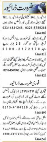 Nawaiwaqt Sunday Classified Ads 29 May 2022 Driving Staff
