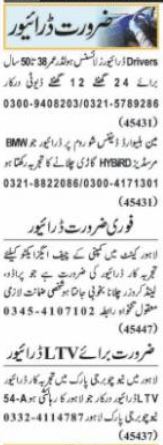 Nawaiwaqt Sunday Classified Ads 3 April 2022 for Drivers
