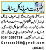 Hospital Clinic invites applications for job positions advertised in daily Nawaiwaqt dated 5 August 2024 for following vacancies in Lahore, lahore Punjab Pakistan.