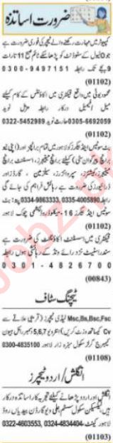 Nawaiwaqt Sunday Classified Ads 4 Dec 2022 for Teachers