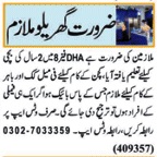 House Lahore, lahore Punjab Pakistan invites applications from eligible candidates for the post of attendant, helper, nanny, house servant and cook as per advertisement of January 6, 2025 published in daily Nawaiwaqt Newspaper. Preferred Education is Middle, Primary and Matric etc.