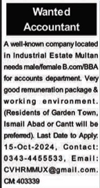 Nawaiwaqt Sunday Classified Ads 6 Oct 2024 for Accounting