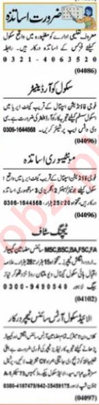 Preferred Education is Bachelor, Master, B.ed, M.ed and MA etc.