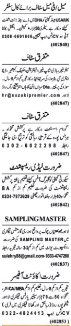Candidates with Bachelor, B.com, Intermediate, MBA, Middle, Matric and CA etc. educational background will be preferred.
