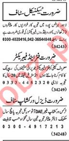 Electrician, Welder, Carpenter, Electronics Engineer, AC Technician, Auto Technician, Denter, Painter, Mechanic, Production Supervisor, Welder, Steamfitter, Roofer, Plumber, Steel Fixer, Lathe Machine Operator, CCTV Operator, UPS Electrician, Machine Operator seeks in well reputed companies.
