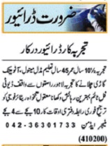 Vacant posts including car driver, ltv driver and driver are announced in Private Company Lahore, lahore Punjab Pakistan as per 10 March 2025 advertisement in daily Nawaiwaqt Newspaper. Preferred Education is Middle etc.