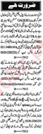 Apply as per details in job advertisement. Login to view further details of how to apply via https://www.jobz.pk online.