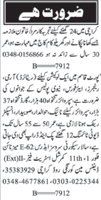 Vacant posts including house worker, inspector, supervisor, havaldar, naik, guard, maid, masi and subedar are announced in Private Company Karachi, karachi Sindh Pakistan as per 9 September 2024 advertisement in daily Nawaiwaqt Newspaper. Intermediate, Matric and Middle etc. educational qualification will be preferred.