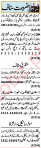 Private Company jobs advertisement dated about 12 June 2023 in daily Nawaiwaqt Newspaper invites application for the vacant post of office staff, dishwasher, assistant accountant, ac technician, generator mechanic, store assistant, site engineer, graphic designer, helper, delivery rider, cctv operator, social media expert, real estate salesman, electrician, field staff, plumber, engineer and computer operator in Lahore, lahore Punjab Pakistan. Intermediate, Middle, I.com, DAE, BA, B.com, Matric and Bachelor etc. educational qualification will be preferred.