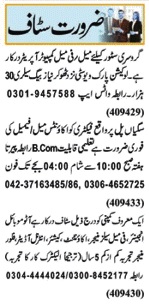 Todays New Jobs in Lahore